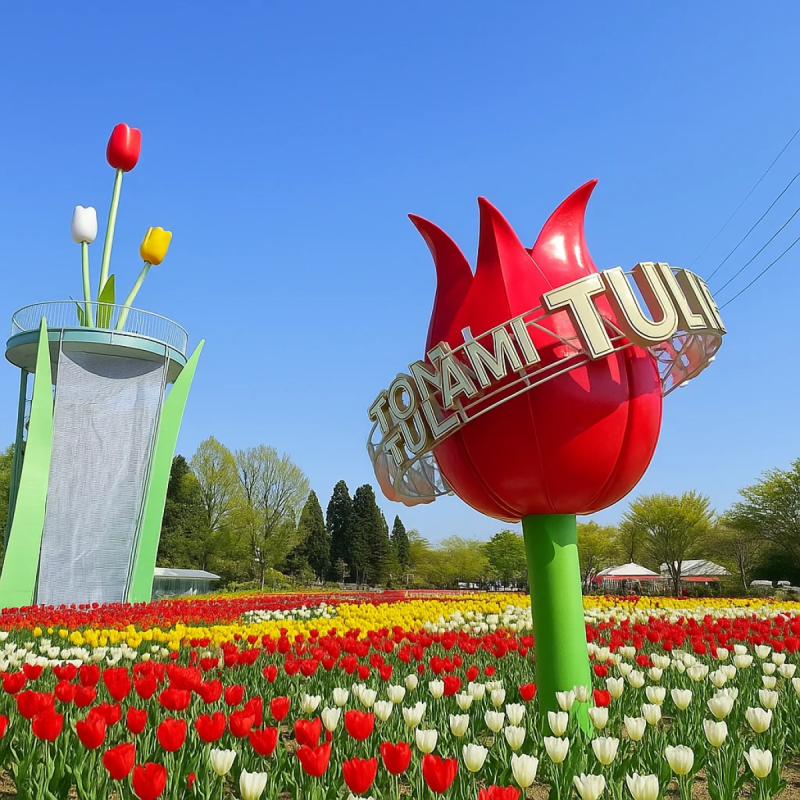 The Tonami Tulip Fair (となみチューリップフェア) is one of Japan’s most vibrant spring events, held annually in Tonami City, just south of Takaoka. Taking place from late April to early May, the fair transforms Tonami Tulip Park into a stunning sea of color, with around three million tulips in over 250 varieties. Visitors can stroll through expansive flowerbeds, admire floating tulips on a tranquil pond, and enjoy panoramic views from elevated walkways and the park’s iconic tulip-shaped observation tower. The park's layout is ideal for photography, relaxing strolls, and soaking in the fresh scents of spring.