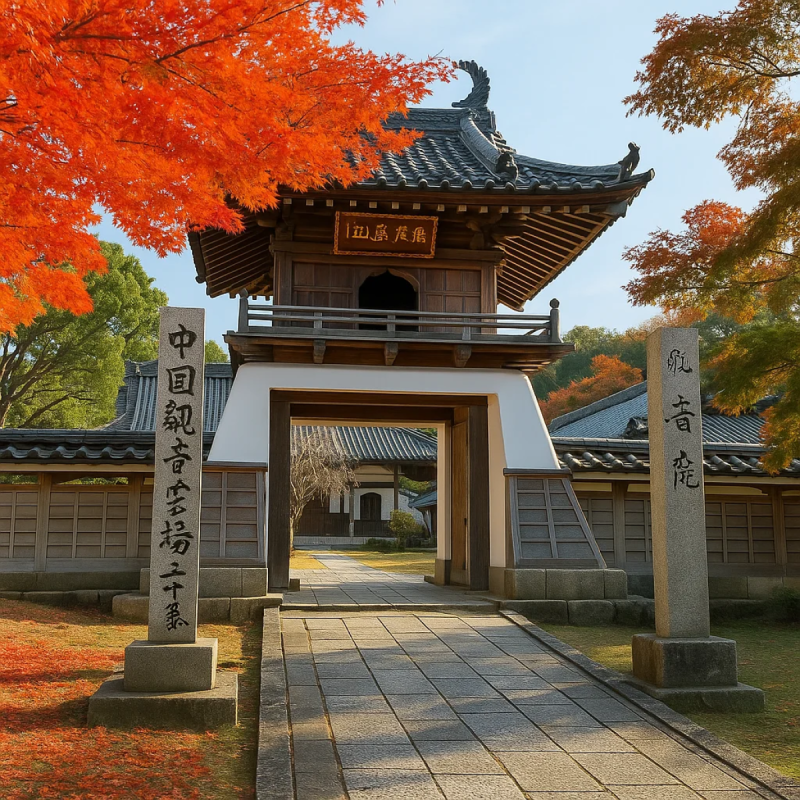 Kannon-in Temple (観音院), a serene Buddhist sanctuary of the Tendai sect, is nestled within the heart of Tottori City. Founded during the Edo Period (1603–1868) by the influential Ikeda family, the temple has long served as a peaceful refuge from the bustle of everyday life. Visitors are welcomed by a meticulously designed garden centered around a large, reflective pond, encircled by vibrant maple and stately pine trees that change with the seasons. The garden’s pond is uniquely adorned with small islands shaped like a crane and a turtle, traditional Japanese symbols representing longevity and good health. Inside the temple’s teahouse, guests can savor matcha tea paired with delicate, handcrafted wagashi sweets while gazing out over the tranquil waters and lush greenery.