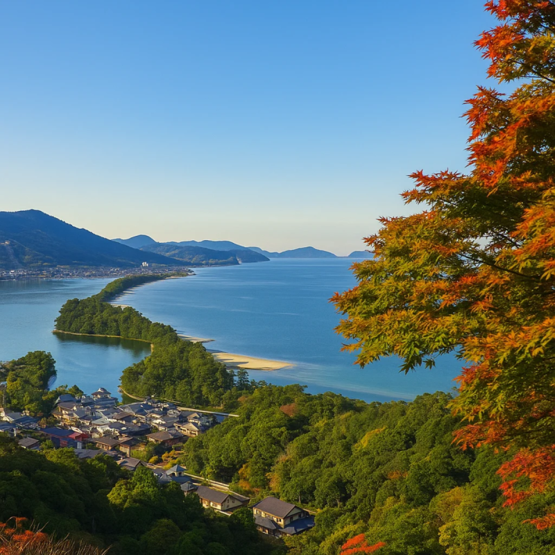 Amanohashidate (天橋立), located in northern Kyoto Prefecture, is a breathtaking natural formation — a narrow, pine-covered sandbar stretching gracefully across Miyazu Bay. Nicknamed the "bridge to heaven," its name reflects the ethereal beauty seen from surrounding viewpoints, where the sandbar resembles a pathway suspended between sky and sea. Revered for centuries and celebrated as one of Japan's Three Scenic Views (Nihon Sankei), Amanohashidate has long captivated poets, artists, and travelers drawn to its tranquil landscape and rich cultural heritage.