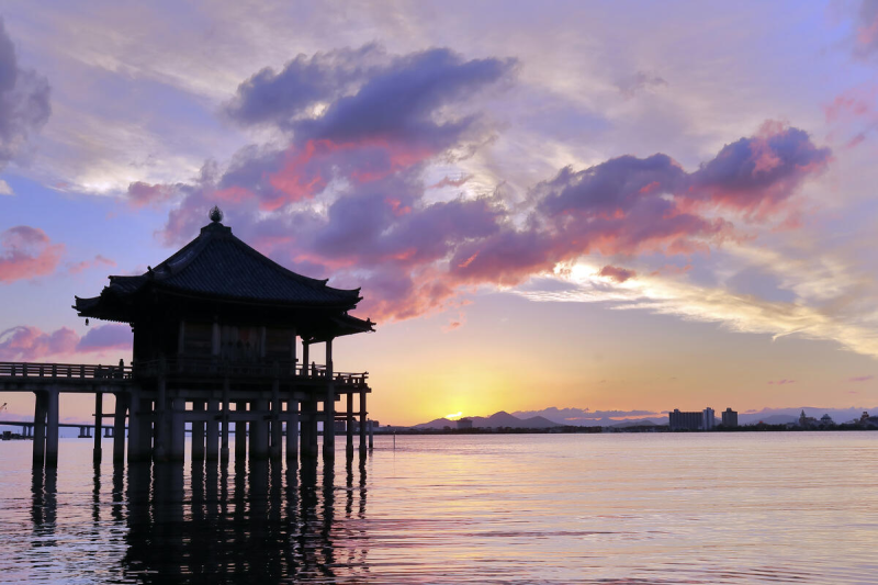 Lake Biwa (琵琶湖) is Japan's largest freshwater lake, located in Shiga Prefecture. With its crystal-clear waters and scenic views, it offers a perfect getaway for outdoor enthusiasts. Enjoy boat rides, cycling along its shore, or simply relax while taking in the serene beauty of the surrounding mountains. The lake is also home to several historical sites, including ancient temples, shrines, and the famous Otsu city.