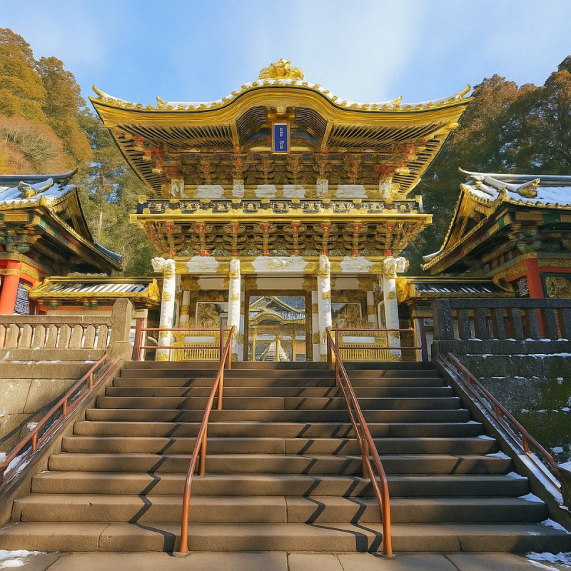 Toshogu Shrine (東照宮, Tōshōgū) in Nikko stands as a breathtaking tribute to Tokugawa Ieyasu, the founder of the Tokugawa Shogunate, and is one of Japan's most iconic cultural landmarks. Originally built as a simple mausoleum, it was transformed into a grand and lavish complex by Ieyasu’s grandson, Tokugawa Iemitsu, in the 17th century. Nestled in a tranquil forest setting, the shrine combines traditional Shinto and Buddhist architectural styles, with over a dozen intricately designed buildings. Among its most famous features are the Yomeimon Gate, renowned for its elaborate carvings and golden details, and the “see no evil, speak no evil, hear no evil” monkey carvings. Visitors are also captivated by the “Crying Dragon” ceiling, known for its unique acoustics that echo when struck.