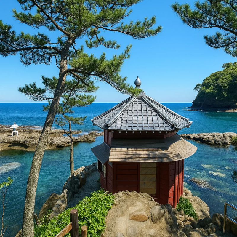 Rokkakudo (六角堂, Rokkakudō), een opvallend zeshoekig gebouw gelegen langs de Pacifische kust in het noorden van de prefectuur Ibaraki, nabij Iwaki, werd oorspronkelijk gebouwd in 1905 door de beroemde geleerde en kunstenaar Okakura Tenshin. Ontworpen als een rustige retraite voor artistieke bezigheden, belichaamt het unieke zeshoekige ontwerp van het gebouw Tenshin’s creatieve visie en zijn verlangen naar harmonie met de natuur. Het gebouw stond op het punt van vernietiging tijdens de tsunami van 2011, maar werd in 2012 zorgvuldig herbouwd. De restauratie heeft de oorspronkelijke architectonische stijl behouden, waardoor het gebouw nu staat als een symbool van cultureel erfgoed en veerkracht in het aangezicht van natuurrampen.
